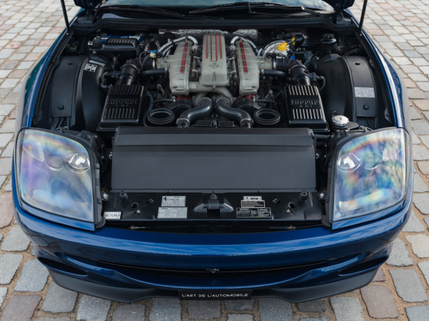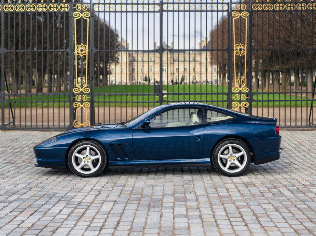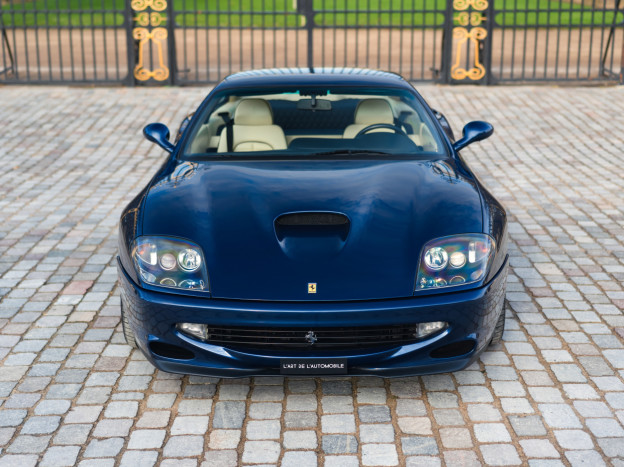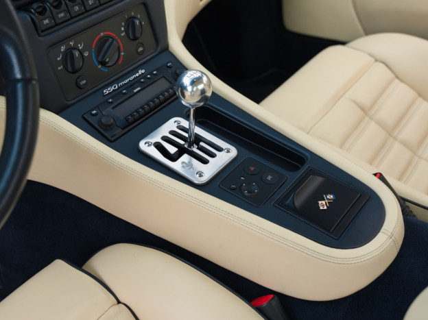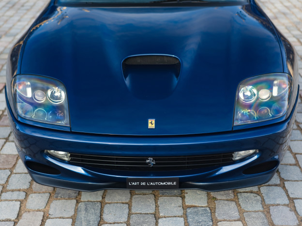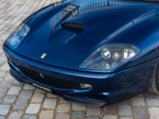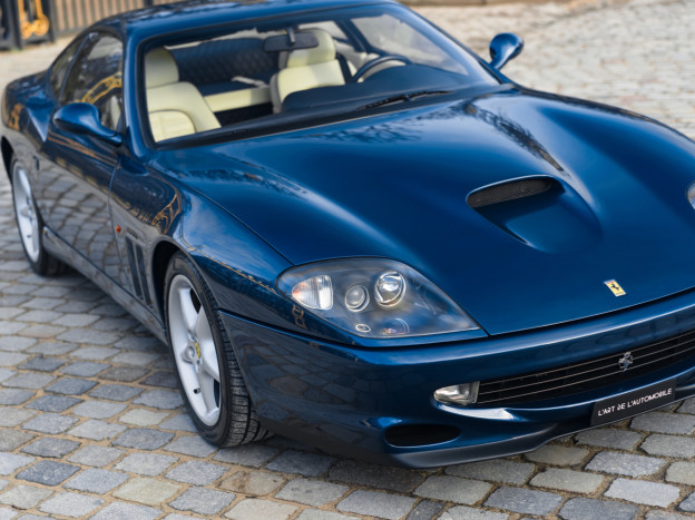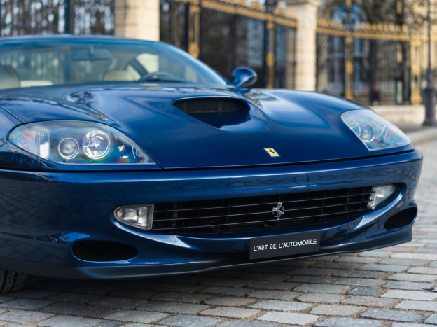 Dévoilée en 1996 au cœur du Nürburgring, la Ferrari 550 Maranello représente alors l’apogée du concept de la berlinette de sport Ferrari, en termes de technologie et de performances. Elle signe également le retour des moteurs avant dans la gamme. Le douze cylindres longitudinal à la sonorité mythique est fort de 485 chevaux. Couplé à sa boîte manuelle, l’auto est propulsée à 100 km/h en 4,4 sec et autorise une vitesse maximale de 320 km/h.