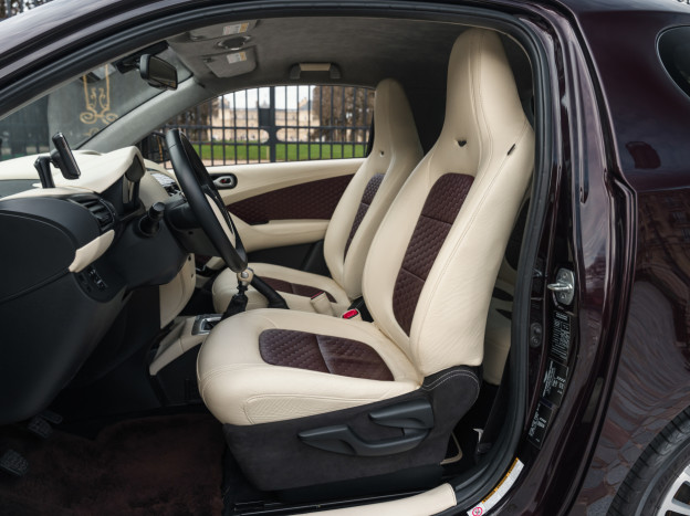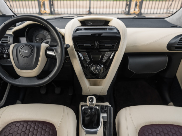 Stylish and unconventional, the Aston Martin Cygnet is the most exclusive of city cars. Hand-assembled by the renowned Gaydon-based firm, its lines conceal a Toyota iQ redesigned according to the winged brand's aesthetic (notably the grille, hood, and LED taillights). It's based on the most powerful version of the small Toyota, with a 98 hp engine. Packed with standard equipment, the customization options for colors and materials are virtually endless, as with all Aston Martins.