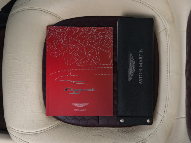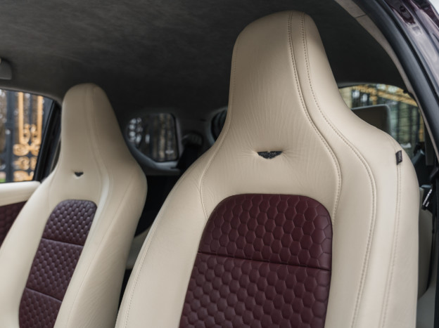 The Aston Martin Cygnet we are offering boasts an exceptional configuration: the exterior paint, Amethyst Red metallic, is from the Q Special color range. The car is equipped with the rare and enjoyable manual transmission, and its Cream Truffle leather interior with quilted Iron Ore Red leather inserts is stunning. This Cygnet comes with its duplicate service book, manuals, spare key, and even the small leaflet. This Aston Martin Cygnet is in impeccable condition and has covered 55,200 km. It will be serviced for sale, and we also have its Certificate of Conformity. This is undoubtedly one of the finest examples currently for sale, highly desirable in this configuration.