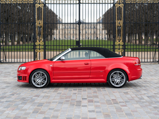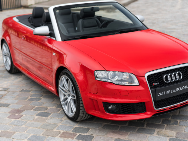 The third generation of the Audi RS4 was unveiled to the public in 2005 at the Frankfurt Motor Show and then at the Detroit Motor Show. This B7 generation was quickly offered as a Cabriolet the following year. Produced until 2008, it stands out for the rare combination of a naturally aspirated V8 engine, Quattro all-wheel drive, and for the first time a convertible body style, delivering true performance along with the pleasure of open-top driving.