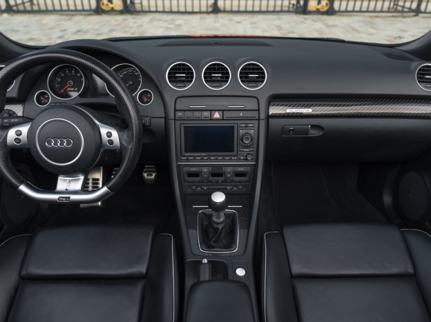 Under the hood is the fabulous naturally aspirated 4.2L FSI V8 producing 420 hp and 430 Nm of torque, paired with a 6-speed manual gearbox and permanent all-wheel drive. The 0 to 60 mph is completed in just 4.9 seconds, with a top speed electronically limited to 155 mph. With a weight of approximately 1,845 kg, it features a sportier chassis and brakes suited to its performance.