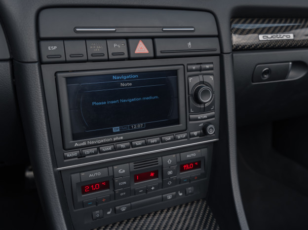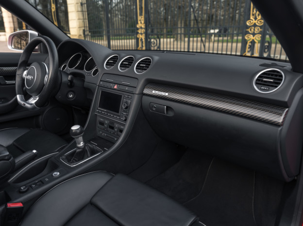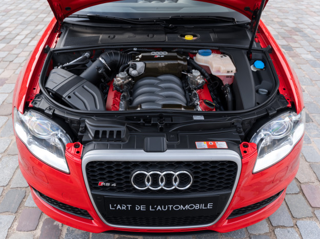 Sous le capot, on retrouve le fabuleux V8 atmosphérique 4,2L FSI développant 420 ch pour 430 Nm de couple, avec une boîte manuelle à 6 rapports et à la transmission intégrale permanente. Le 0 à 100 km/h est abattu en seulement 4,9 secondes avec une vitesse maximale électroniquement bridée à 250 km/h. Avec un poids d’environ 1 845 kg, elle reçoit un châssis plus sportif avec des freins adaptés à ses performances.
