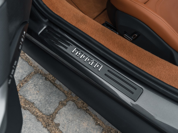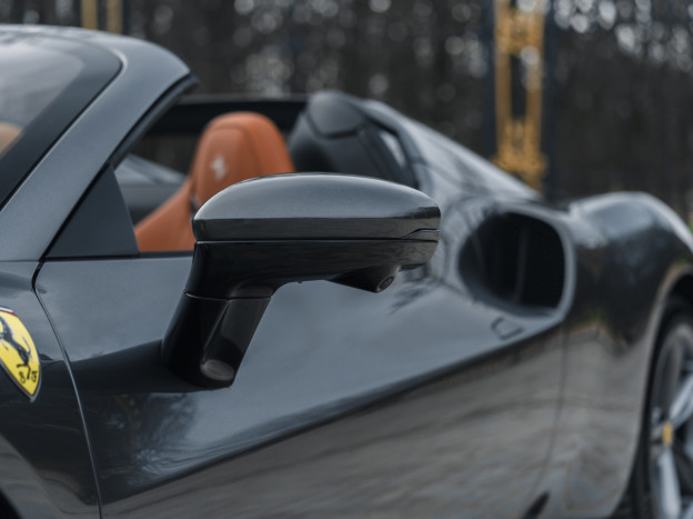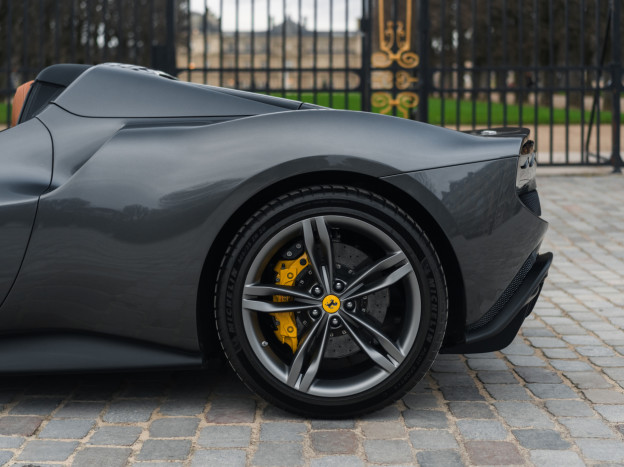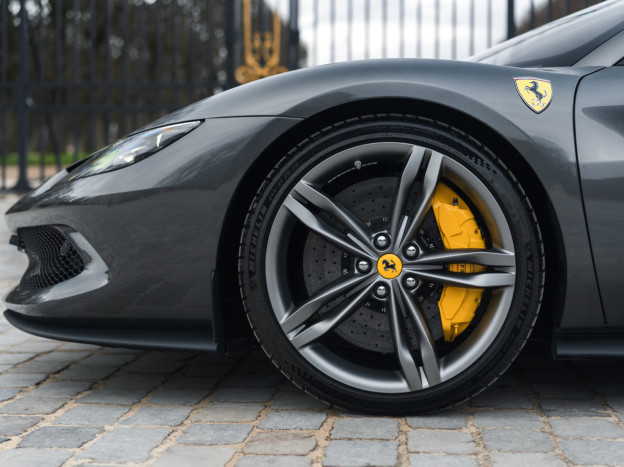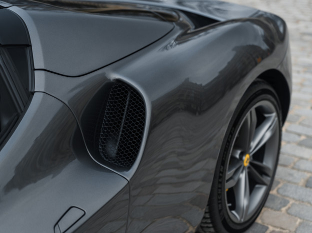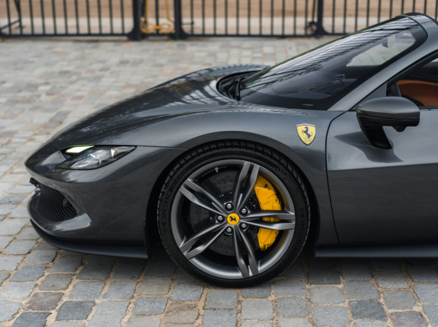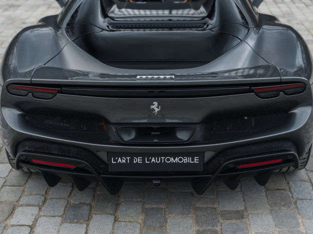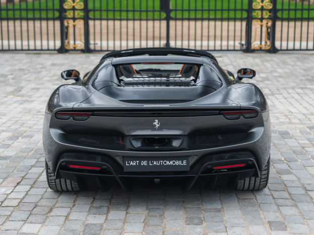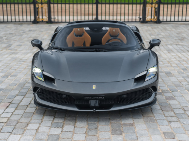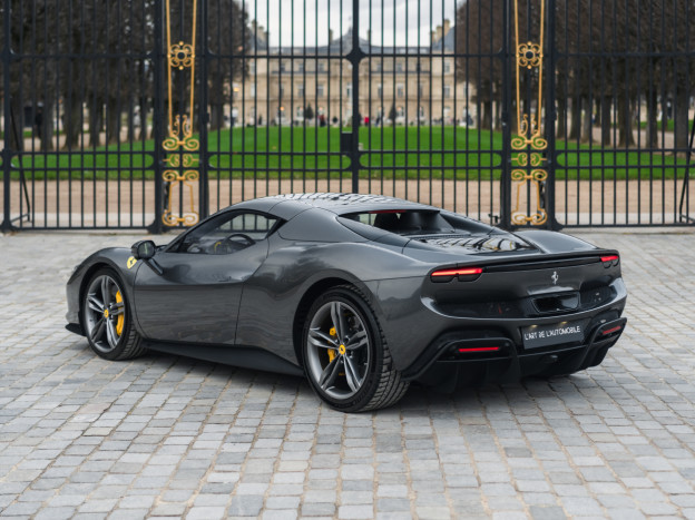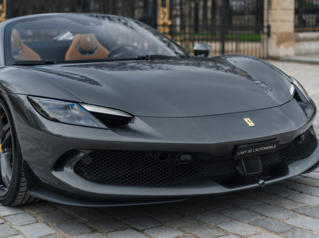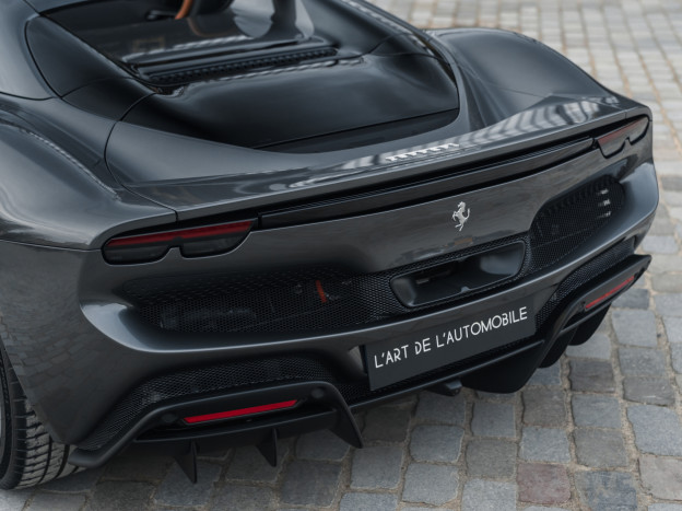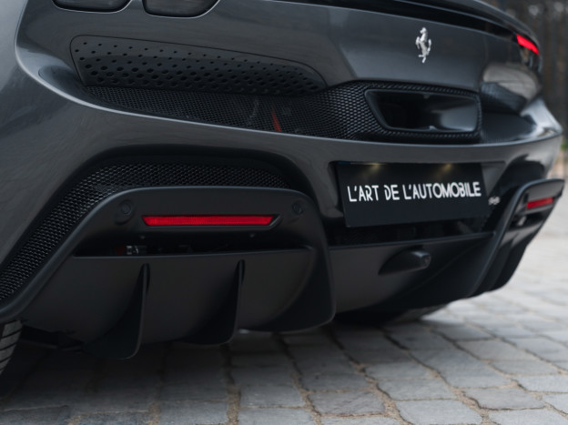 La Ferrari 296 GTS que nous proposons à la vente affiche seulement 3 200 kms au compteur ! Cette Ferrari dispose d'une configuration élégante et poussée. Peinte dans l'élégante couleur Grigio Silverstone, avec les jantes peintes en gris mat, les écussons d'ailes, les étriers jaunes et les sorties d'échappement noires, l'intérieur de cette Ferrari est vêtu de cuir Cuoio avec le volant en carbone tout comme de nombreux éléments, les sièges full électriques ventilés et les coutures en Grigio Chiaro. Cette auto est idéalement optionnée pour la vie de tous les jours, disposant entre autres des aides au stationnement dont la vue panoramique, de l'Apple CarPlay, des feux adaptatifs, de la Hi-Fi Prenium.