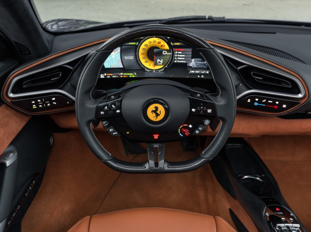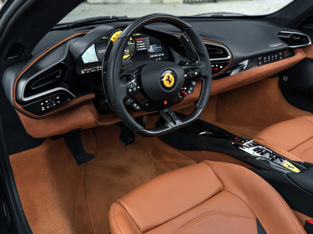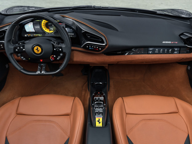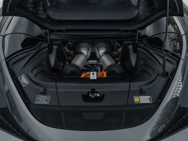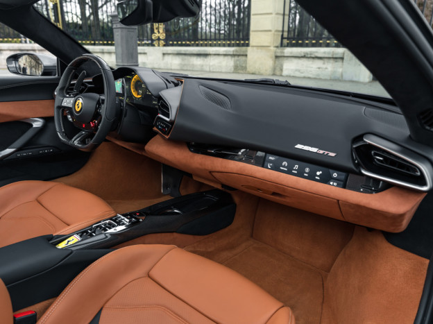 Under the hood, the Ferrari 296 GTS engine delivers a total power of 830 horsepower, combining the 663 horsepower of the 3.0L twin-turbo V6 with the complementary power of the electric motor. This allows the car to reach 205 mph, while reaching 60 mph in just 2.7 seconds. The Ferrari 296 GTS offers exceptional handling thanks to its sophisticated chassis. Maranello engineers have managed to maintain a captivating sound, which guarantees an exceptional open-top driving experience.
