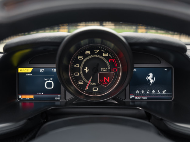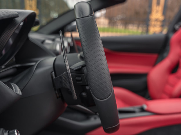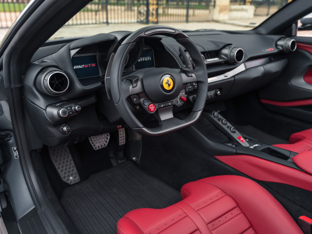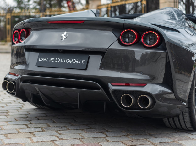 With now 800 hp under the hood, which is 60 hp more than the V12 of the F12 Berlinetta, the 812 takes a step forward in the world of Grand Touring and allows the GTS to become the most powerful convertible on the market. This is the first time since 1969 with the Daytona Spider that Ferrari has offered a V12 spider as standard. This car revolutionizes the idea since it has the soul and functionality of a hypercar, both in power and technicality, while preserving a front-engined GT style and the assertive character of a beautiful Italian. You just need to look at the figures to validate its velocity, for instance with an impressive red zone placed at 8500 rpm. 2.9 seconds are enough to reach 60 mph, less than 8 seconds to touch 125 mph. The maximum speed exceeds 211 mph.