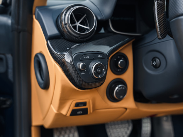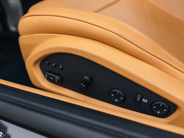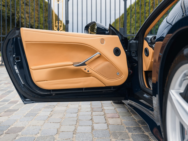 The interior is also exceptional, customized right down to the rear parcel shelf. Mostly in Beige leather, the cabin features a few subtle touches of blue and carbon fiber. The car is very well equipped with JBL Hi-Fi, cruise control, parking sensors, ... In exceptional condition, this Ferrari F12 Berlinetta was delivered to the Ferrari dealership in Hengelo, the Netherlands, where it has been exclusively serviced. Now registered in France, this F12 has covered only 16,700 km and will be serviced again prior to the sale.