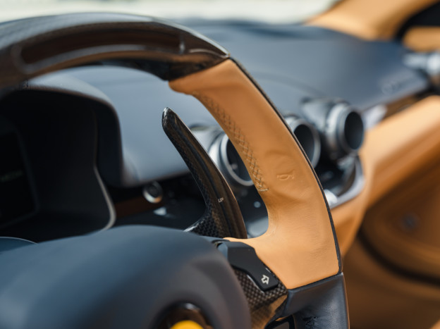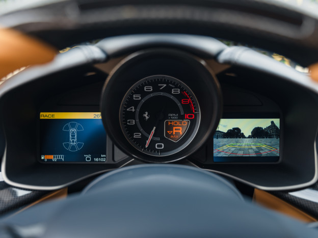 A worthy heir to the lineage of front-engined GT V12 Ferraris, this technological gem from Formula 1 is also powered by the engine derived from the legendary FXX. Developing 740 hp, its fabulous V12 allows it to reach 60 mph in just 3.1 seconds and gives it a top speed of 214 mph. The whole car rests on an all-aluminum chassis suspended by a new magnetic suspension system, providing astonishing grip thanks to ideal weight distribution.