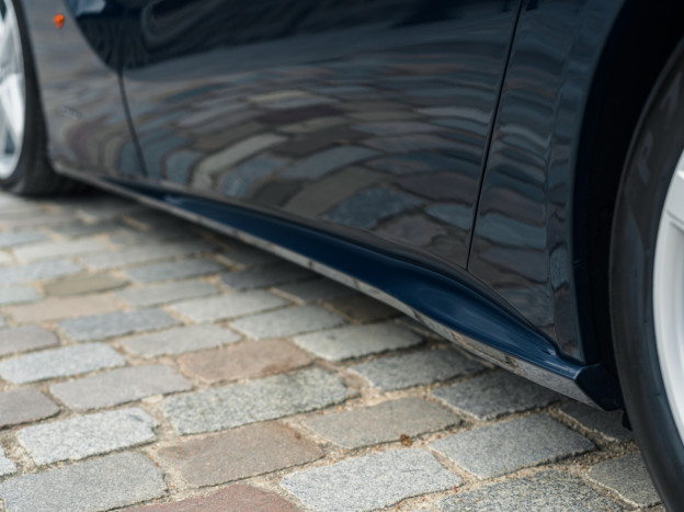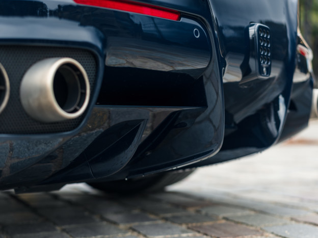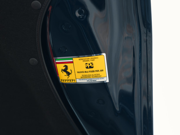 We offer for sale an exceptional Ferrari F12 Berlinetta, in an extraordinary configuration. The car benefits from the superb Nuovo Blu Pozzi paintwork, and, a very rare feature, the paintwork extends to the lower part of the front end, the side skirts, and the rear diffuser, leaving no room for plastic elements. The silver wheels with Blu Pozzi caps and aluminum calipers are also stunning. The paint is fully protected by an Xpel Ultimate Plus PPF.