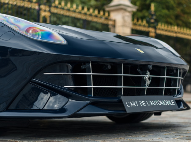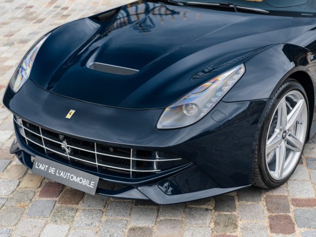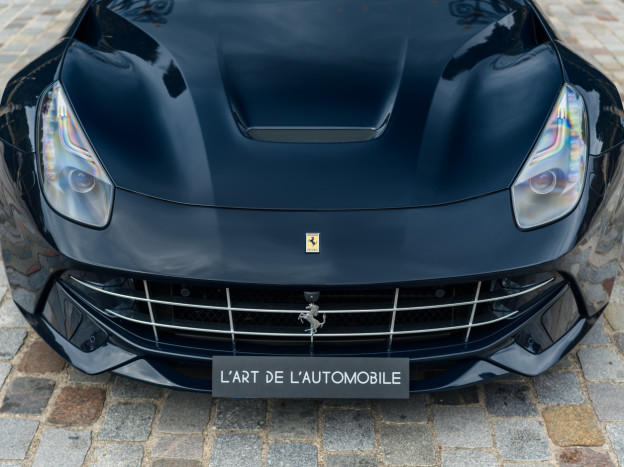 Nous proposons à la vente une exceptionnelle Ferrari F12 Berlinetta, dans une configuration extraordinaire. L'auto bénéficie de la superbe peinture vernie Nuovo Blu Pozzi, et, caractéristique très rare, la teinte s'étend jusqu'à la partie basse du bloc avant, aux bas de caisse et au diffuseur arrière, ne laissant aucune place aux éléments en plastique. Les jantes en argent avec l'écrou de roue en Blu Pozzi et les étriers Aluminium sont également du plus bel effet. Sa carrosserie est intégralement protégée avec un film Xpel Ultimate Plus.