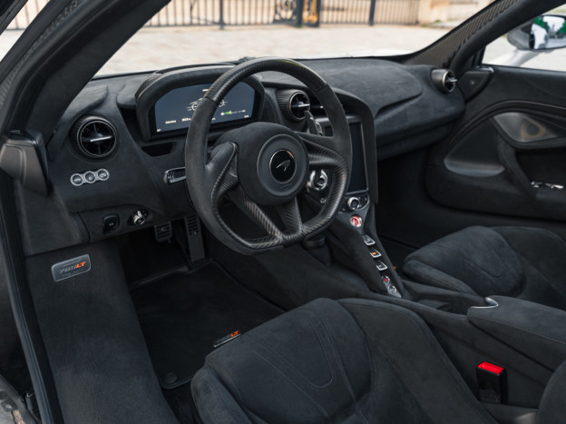 Nous sommes fiers de proposer à la vente un très bel exemplaire de la McLaren 765 LT Coupe, l'auto n°553/765. L'auto a parcouru seulement 3 700 kms et est très bien équipée : on retrouve la télémétrie, des options MSO comme le volant en carbone, l'assistance au stationnement 360°, la colonne de direction électrique, les sièges électriques et chauffants à mémoire, les badges Stealth...