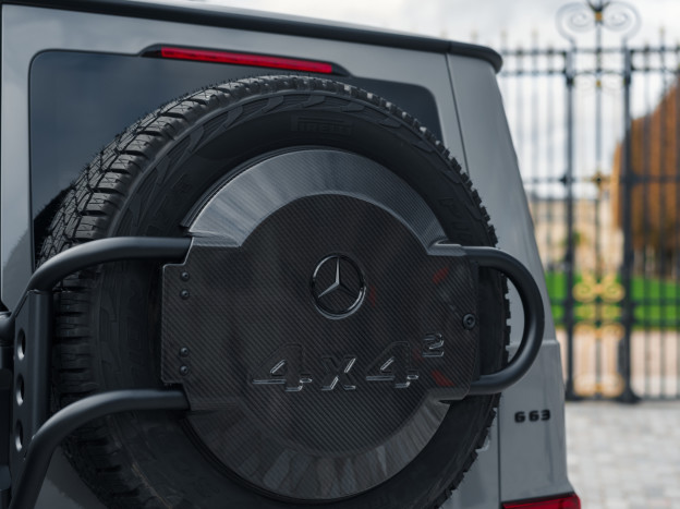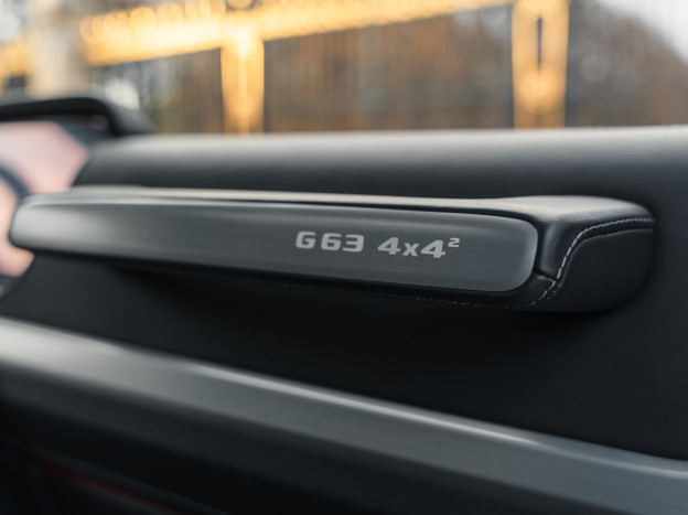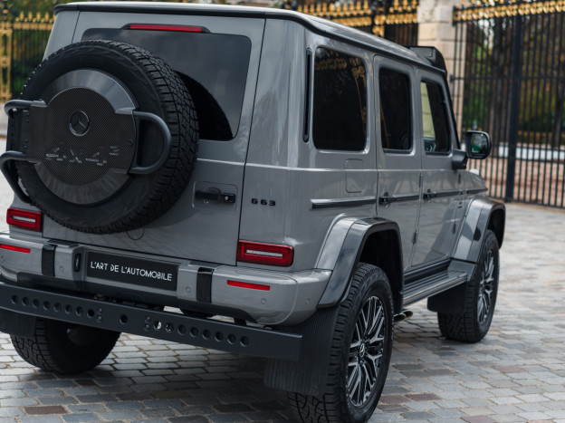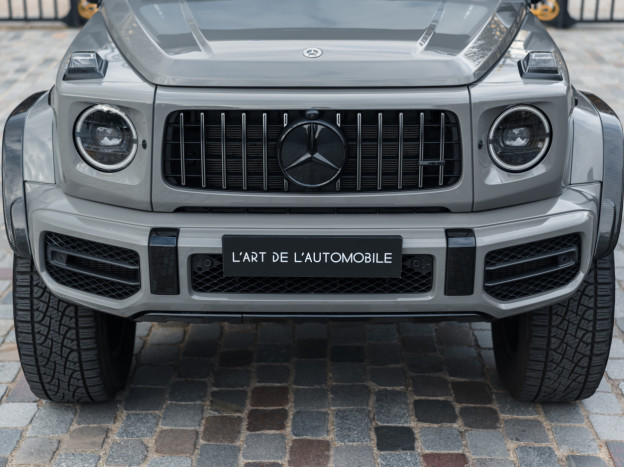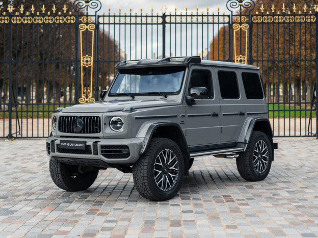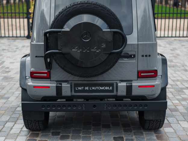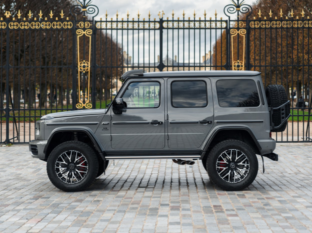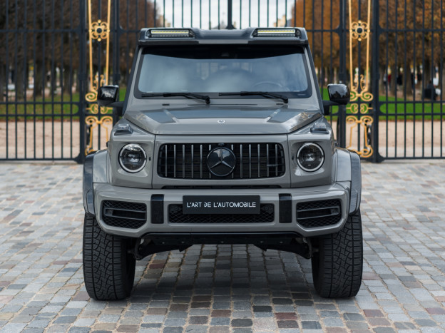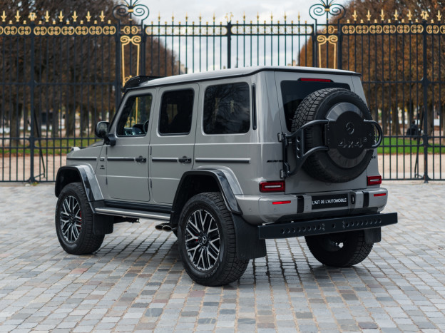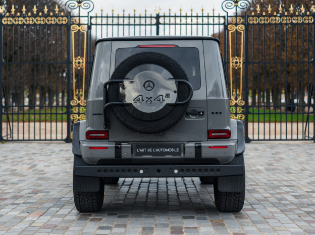 Mais une version encore plus extraordinaire voit le jour : en effet, le G63 AMG 4x4² bénéficie d’une préparation spécifique qui rehausse ses capacités tout-terrain à un niveau extrême. Il adopte des essieux portiques lui offrant une garde au sol impressionnante de 351 mm. Les voies sont élargies, les ailes sont en partie en carbone et les pneus tout-terrain massifs contribuent à une stabilité et une motricité exceptionnelles, même sur les terrains les plus hostiles. Cette configuration est proposée aux clients Mercedes moyennant un ajout de 134 900 € par rapport à un G63 AMG d'origine.