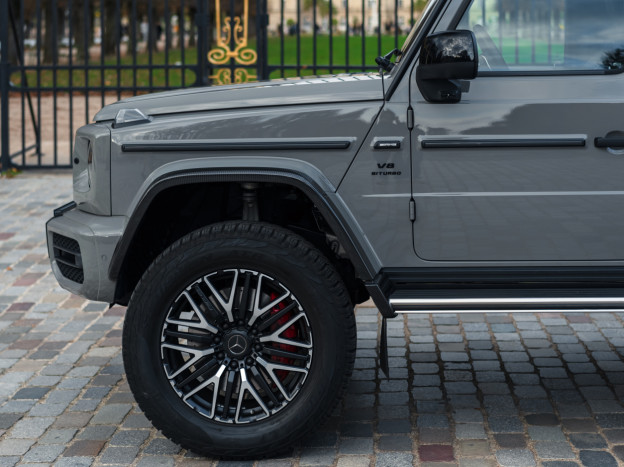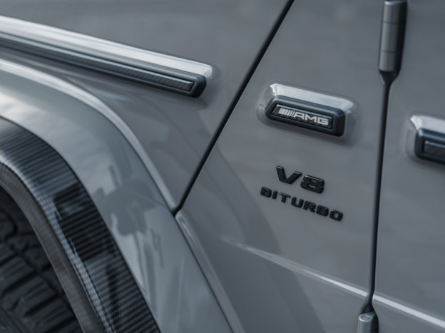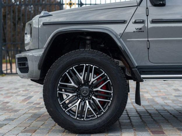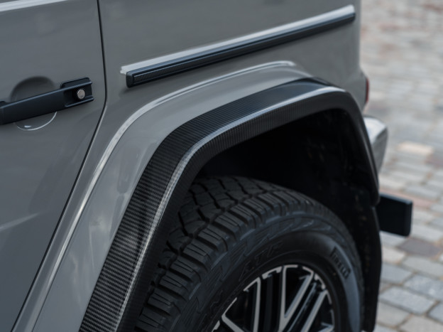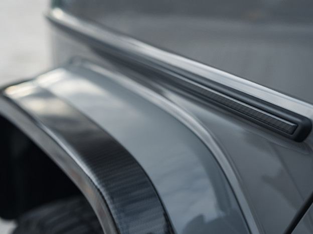 But an even more extraordinary version is launched: the G63 AMG 4x4² features multiple changes that elevates its off-road capabilities to an extreme level. It adopts portal axles, giving it an impressive ground clearance of 351 mm. The track is widened, the fenders are partly made of carbon fiber, and the massive off-road tires contribute to exceptional stability and traction, even on the most challenging terrain. This configuration is offered to Mercedes customers for an additional €134,900 compared to a standard G63 AMG.