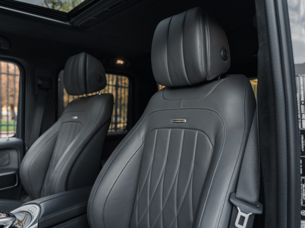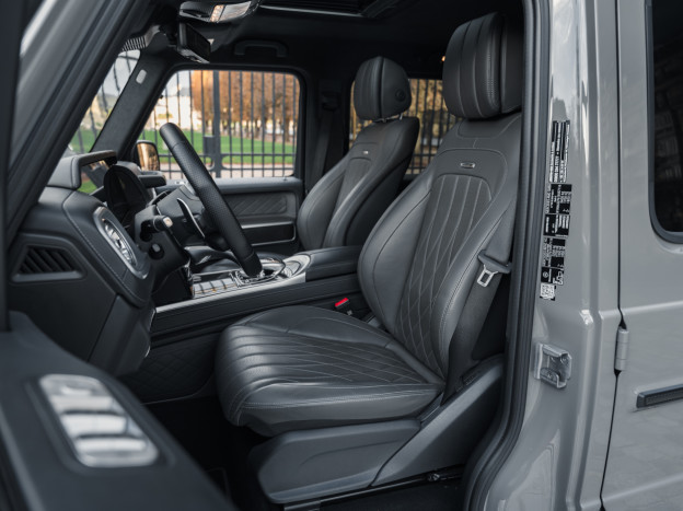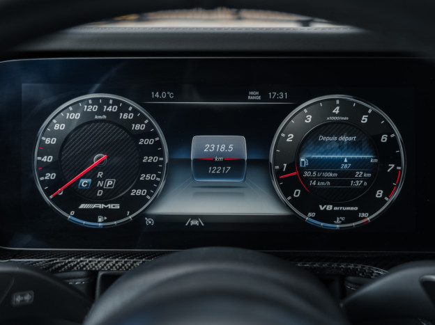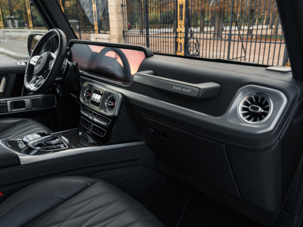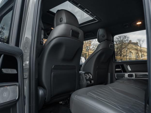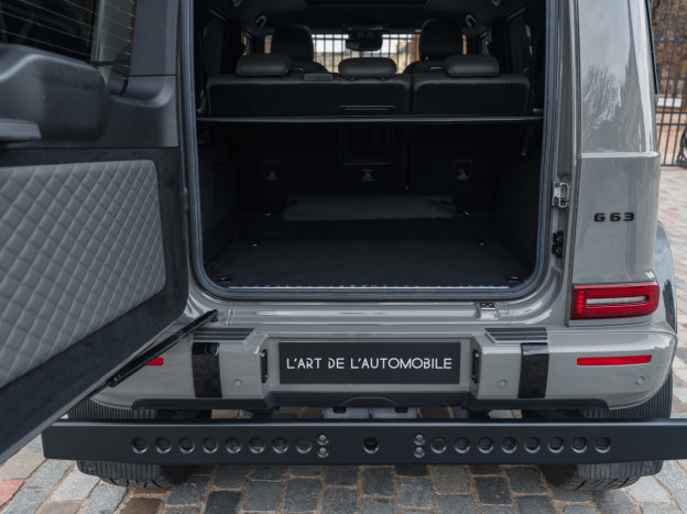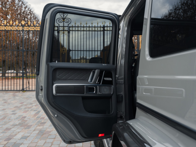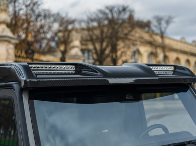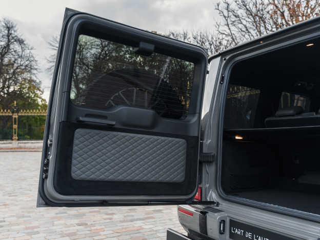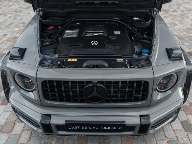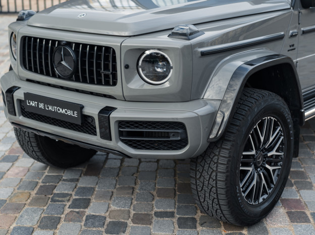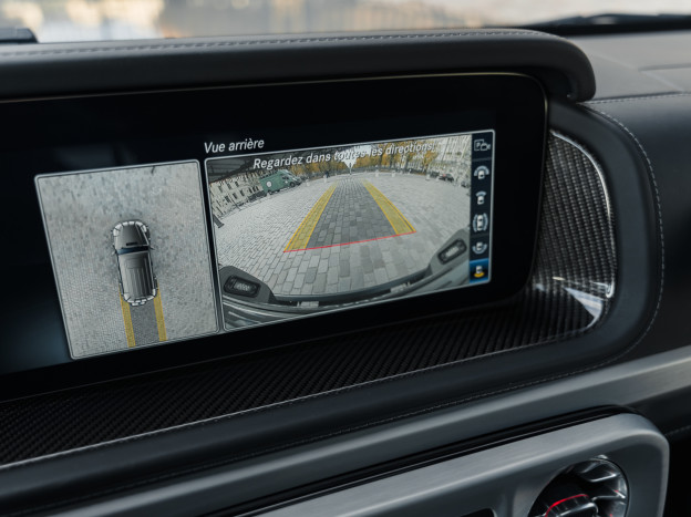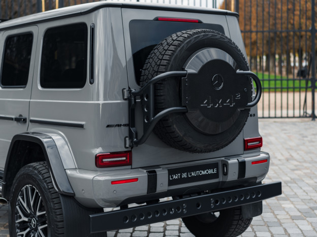 Bien entendu, ce Classe G bénéficie de la Sono Burmester, du toit ouvrant, des nombreuses aides à la conduite et au stationnement. Il est en plus équipé du Pack Sport Black AMG et du Pack Sport Black AMG II, des inserts décoratifs AMG en carbone, de la Superior Line intérieure incluant les sièges multicontours actifs Plus. La finition 4x4² apporte les caméras panoramiques, le cache-moteur AMG en carbone, la roue de secours Professional en carbone, les bavettes, le rétroviseur intérieur numérique, ...