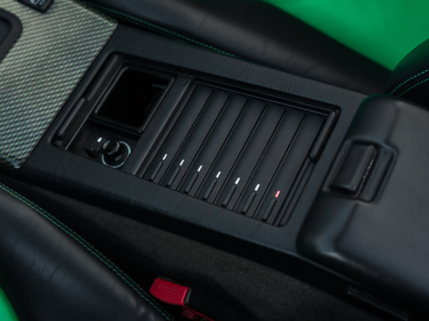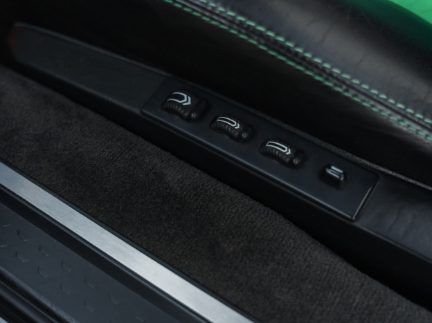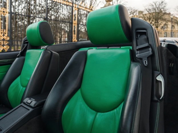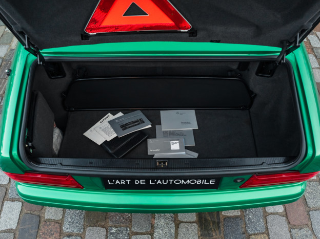 Nous proposons à la vente un exceptionnel exemplaire de la légendaire Mercedes SL 500 R129. Cette auto livrée neuve en Suède a en effet parcouru seulement 33 500 kms en 28 ans ! C'est une version 2+2 et l'auto se présente naturellement dans un état de conservation exceptionnel. Elle bénéficie d'une configuration Designo spectaculaire : l'extérieur se pare de la rarissime teinte Vert Edison, assortie aux nombreux inserts Designo en cuir vert dans l'habitacle. Sa configuration a été poussée dans les moindres détails, on retrouve les sublimes jantes 18" AMG originales qui nécessitaient de modifier la coque, et à l'intérieur outre les tapis Designo sur mesure, on remarque immédiatement l'abondance de carbone teinté vert sur la console centrale et les panneaux de porte vient sublimer et rendre unique cette auto.