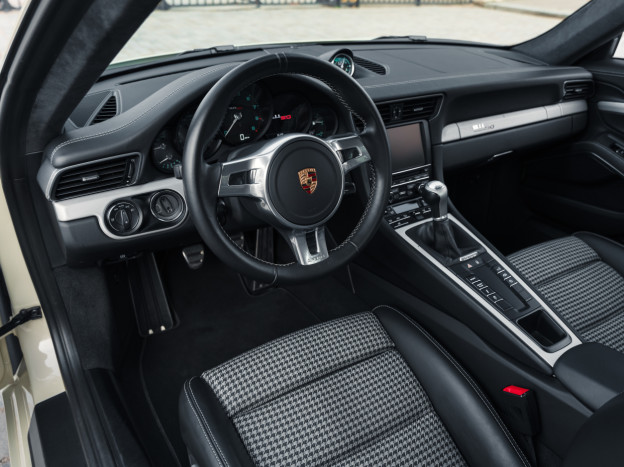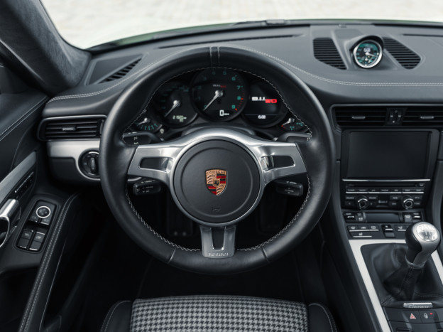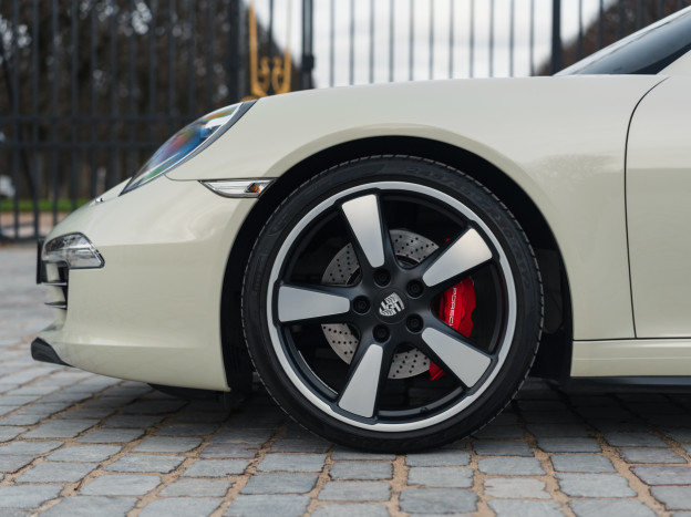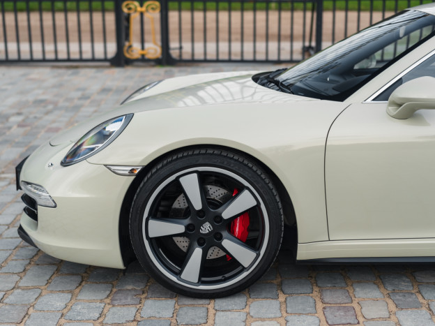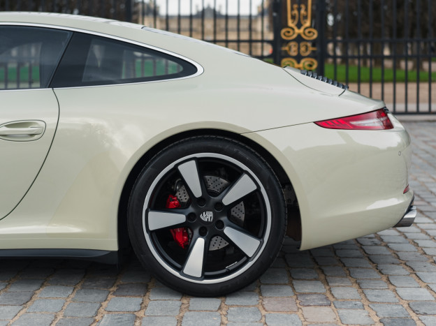 Porsche celebrates the 50th anniversary of the 911 at the 2013 Frankfurt International Motor Show (IAA) with a special anniversary model based on the 991 Carrera S: this version features the widebody kit typically reserved for the 4WD Carrera 4. This limited edition of 1,963 units echoes the year the 911 was introduced. The first thing that distinguishes this exceptional model is its 20" Fuchs-style wheels. Two exclusive colors are offered by Porsche for this edition: dark Graphite Grey and a lighter Geyser Grey Metallic. A solid black version was also available.