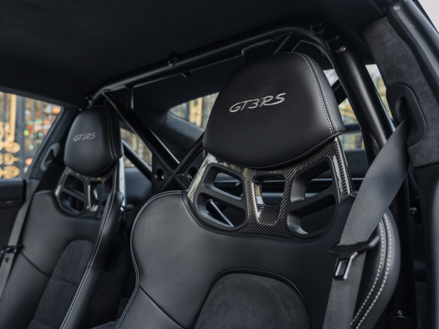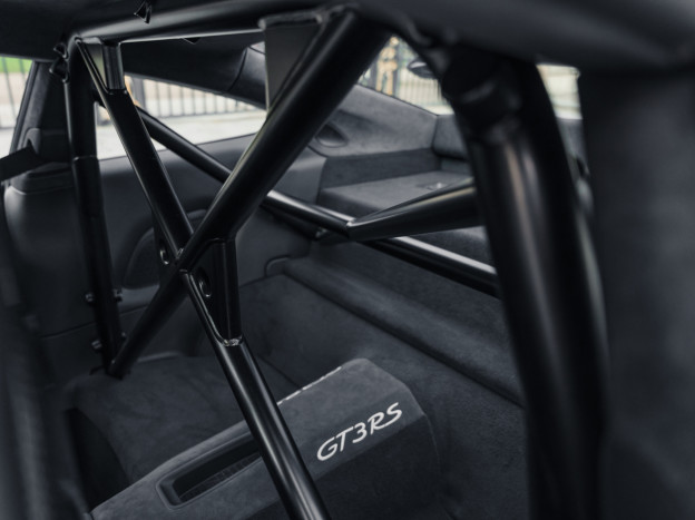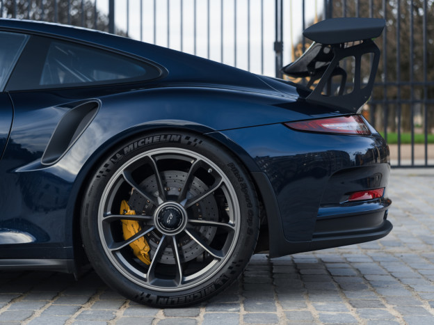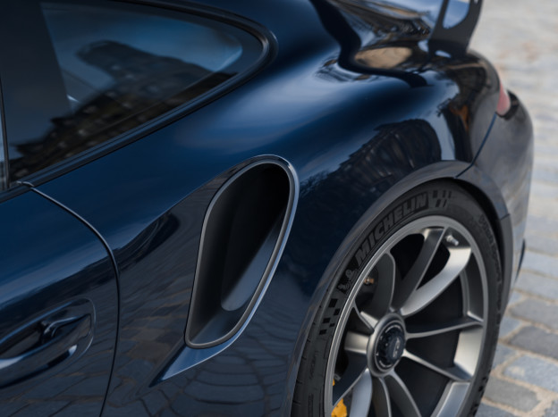 La Porsche 991 GT3 RS est vue à sa sortie comme le modèle le plus extrême de série dans la gamme 911. Pour cela, cette auto ultra-radicale et pistarde dans l'âme s'habille de série d'un immense aileron arrière fixe, de jantes à écrou central, de sorties d'air supplémentaires, mais aussi à l'intérieur de l'imposant arceau-cage, d'un extincteur ou encore de harnais 6 points. Pour mériter le prestigieux label RS, cette 991 bénéficie évidemment d'une augmentation de cylindrée, d'un allègement, d'une optimisation de l'aérodynamique et des trains roulants.