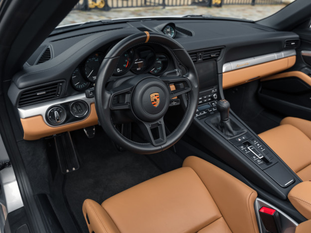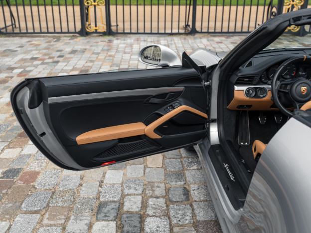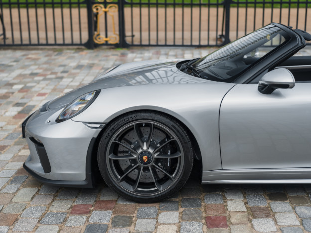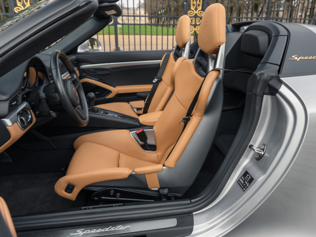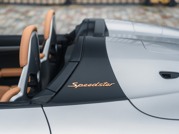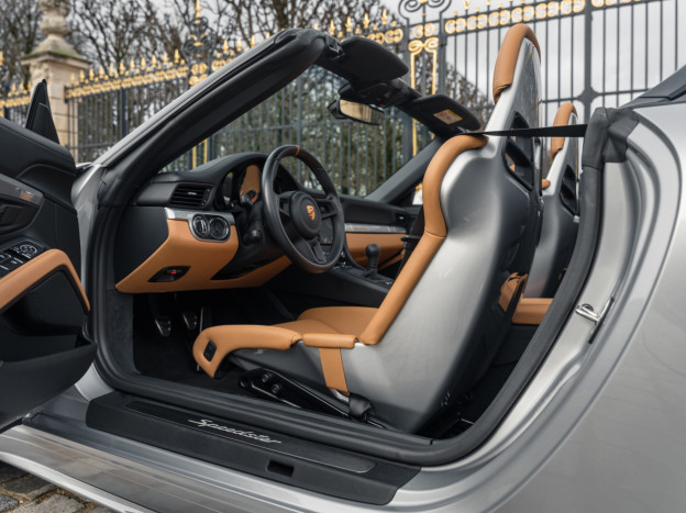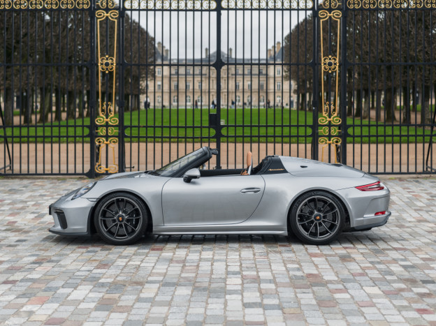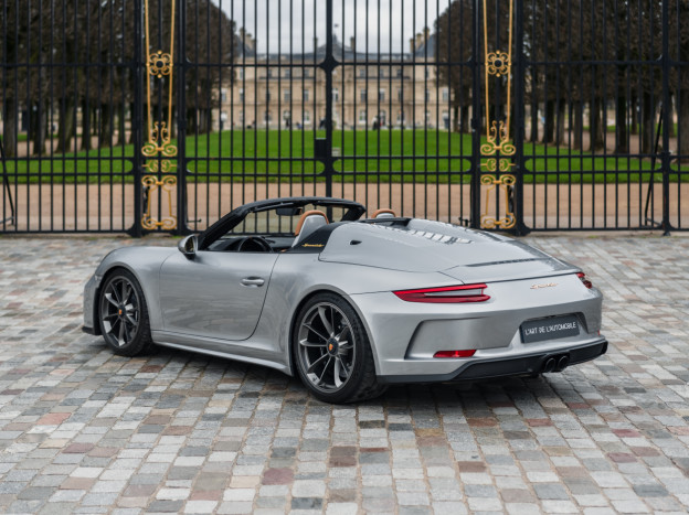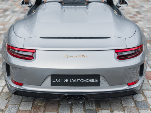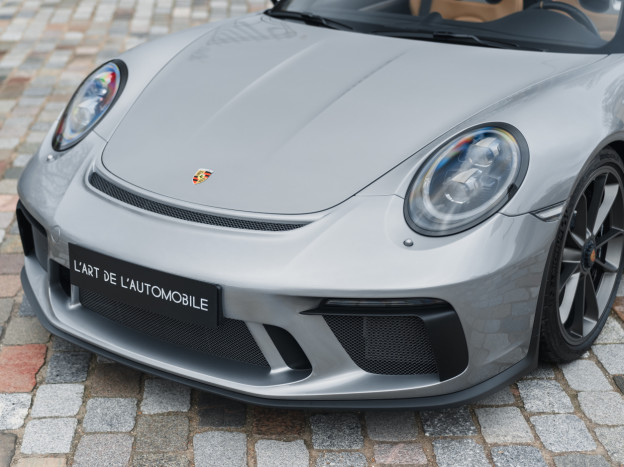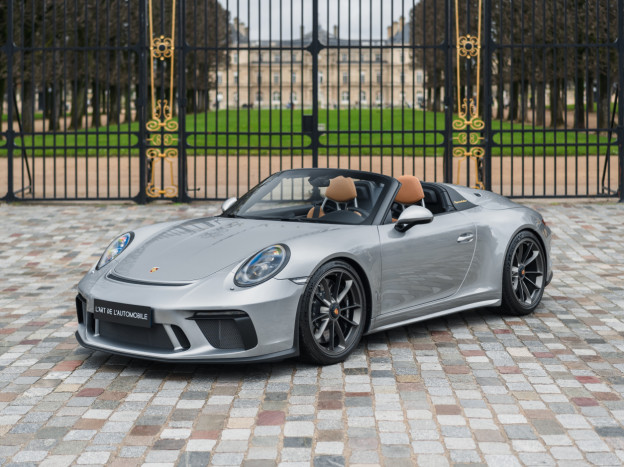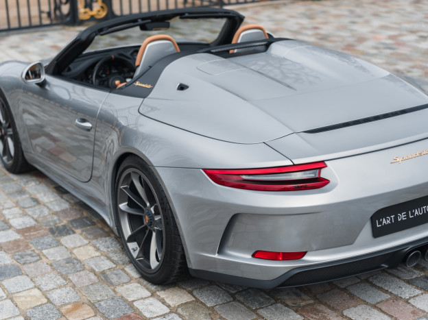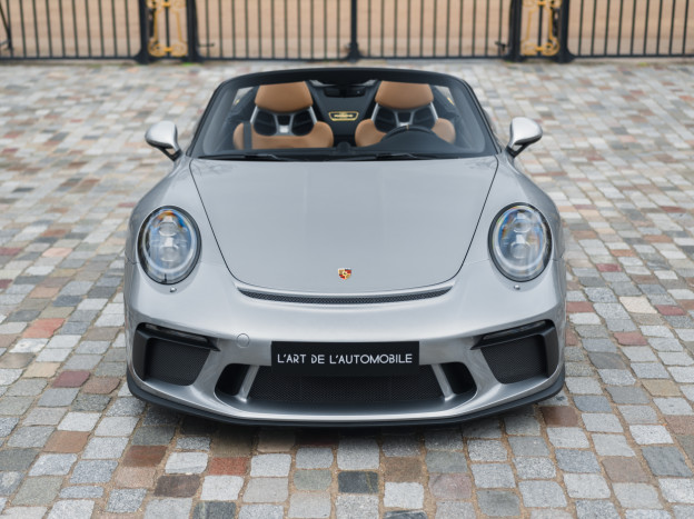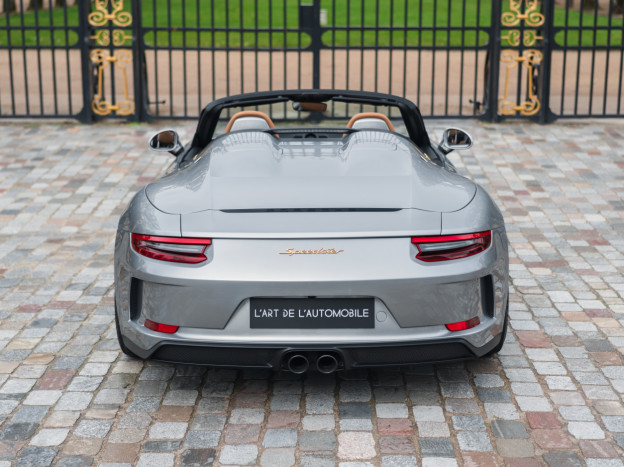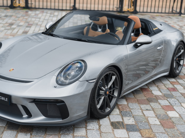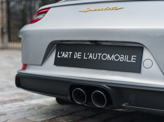 A true collector’s item and one of Porsche’s finest achievements of recent years, we are pleased to offer for sale a Porsche 991 Speedster in impeccable condition, still in its original paint, with only 7,500 kms. French second hand, delivered by Porsche Centre Clermont-Ferrand in November 2019, it features the Heritage Design Package and therefore GT Silver paint, with the Heritage Package decals deleted and Platinum wheels, and a full two-tone Cognac and Black leather interior, with interior details painted in Silver and carbon door sills as well as ceramic brakes.