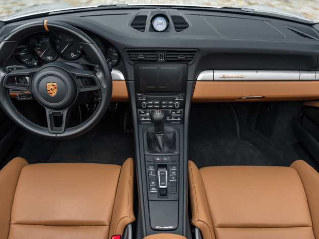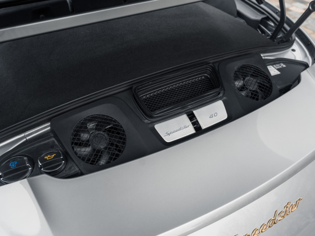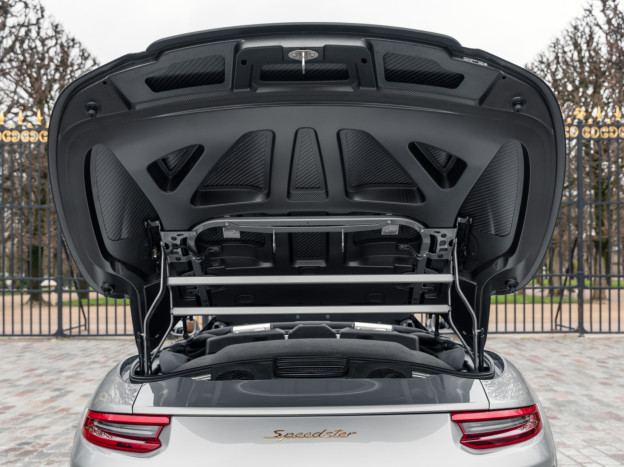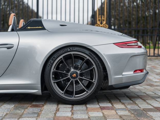 Numerous improvements are featured: the intake has been redesigned, the sports exhaust system has been lightened by 10 kilos, the tracks have been widened, the high-pressure injector jet has been optimized, and an automatic heel-toe system has been added. The 991 Speedster inherits rear-wheel steering and PCCB carbon-ceramic brakes.