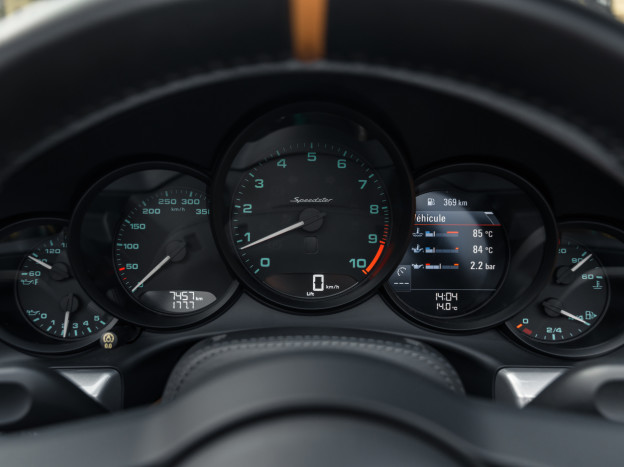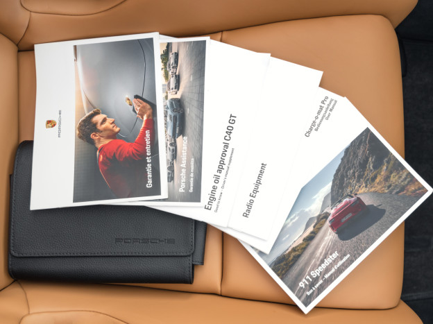 Cette 991 Speedster est très bien équipée, on retrouve par exemple le lift, la caméra de recul, le Pack Sport Chrono, l'audio BOSE, les feux PDLS, l'Apple CarPlay, le réservoir 90L... Il s'agit de l'exemplaire 0354/1948 et nous disposons de son carnet avec toutes ses notices. Toujours suivie dans le réseau, la voiture a été révisée en septembre 2025 et est également intégralement recouverte d'un film de protection.