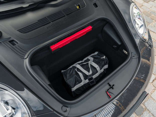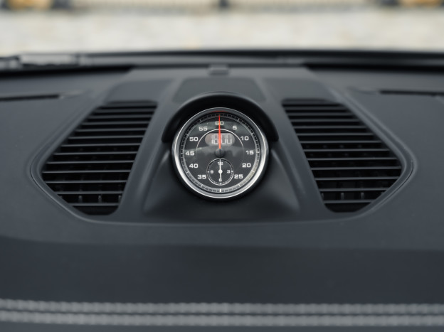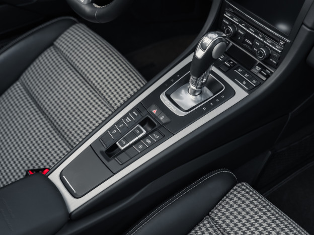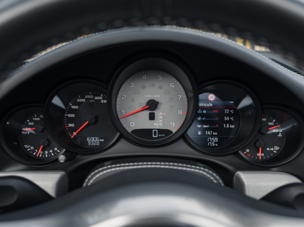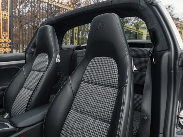 The limited edition of 15 cars designed specifically for the French market stands out with its Paint to Sample Black Grey finish, extended to the lower body sections. This color is combined with 20" Sport Classic wheels, along with the Sport Design front bumper and mirrors. The interior also pays tribute to Porsche Exclusive’s craftsmanship: the center sections of the seats are upholstered in the charming Pepita fabric, a historical nod, and decorative stitching in Rhodium Silver adds refinement. Edition-specific details appear on the dashboard and door sills, while the center armrest proudly bears the Porsche Exclusive Manufaktur insignia.