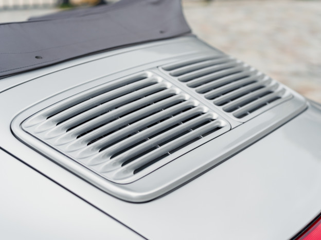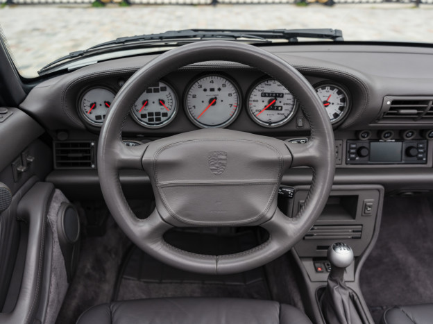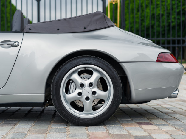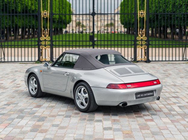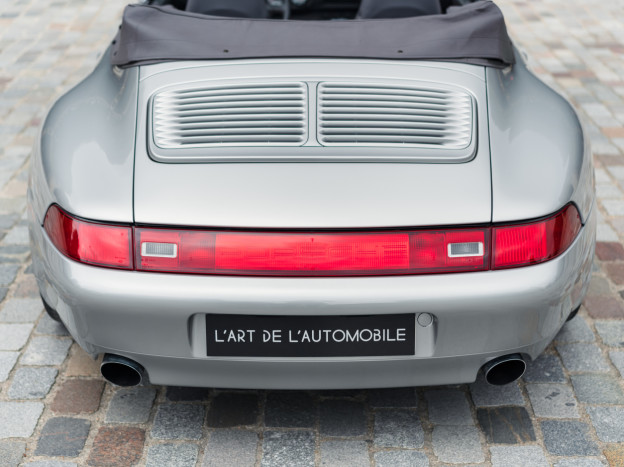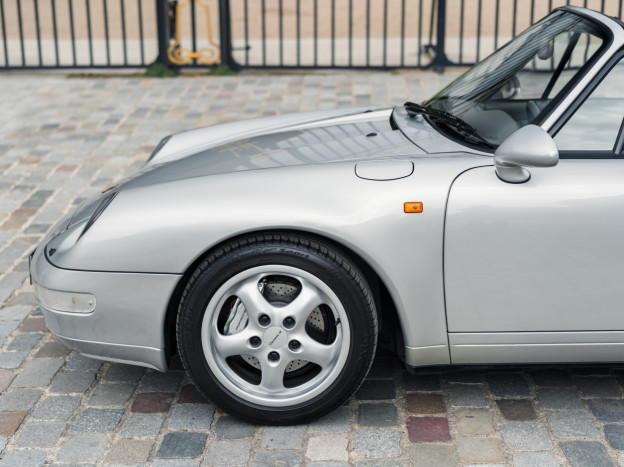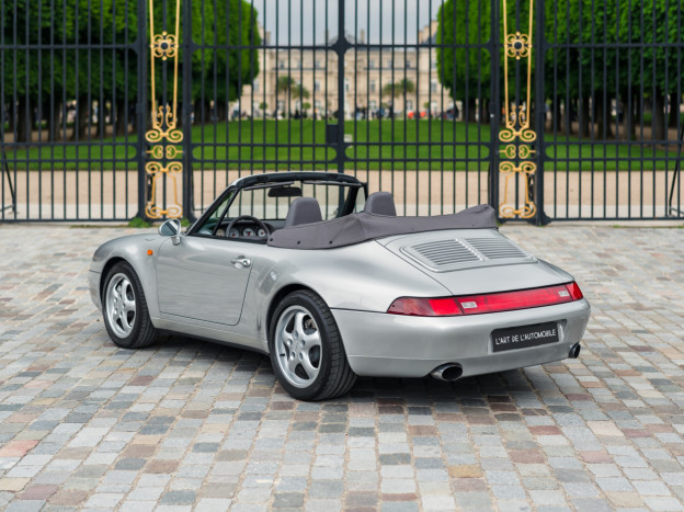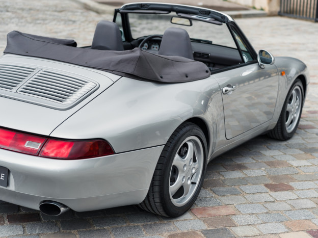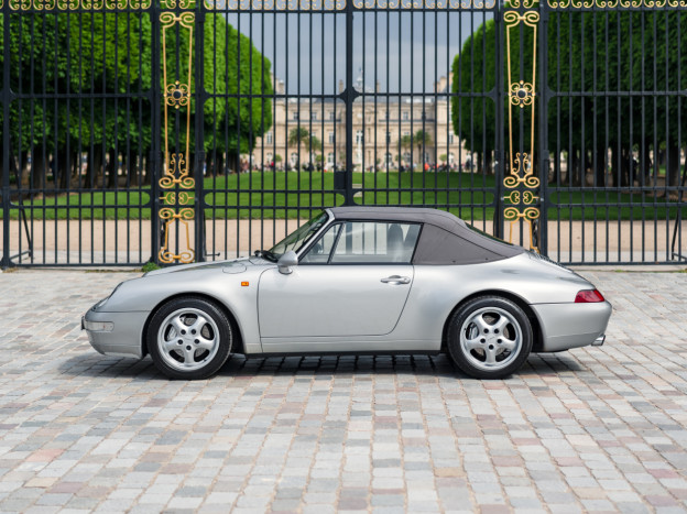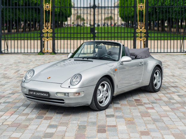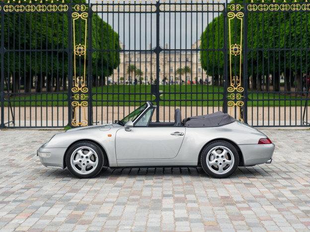 La 911 Type 993 est considérée par beaucoup comme la plus belle de toutes les 911 car elle conserve la ligne de base en ajoutant la modernité mécanique et esthétique. Parallèlement à l'introduction de la caisse profilée, une suspension arrière multi-bras améliore le confort et le comportement dynamique en réduisant la tendance au survirage. La 993 Carrera Cabriolet avec le kit X51 hérite du moteur Flat 6 tout aluminium de 3,8L de la Carrera RS, qui développe 300 ch. Le 0 à 100 km/h est réalisé en 5,5 secondes pour une vitesse maximale établie à 270 km/h.