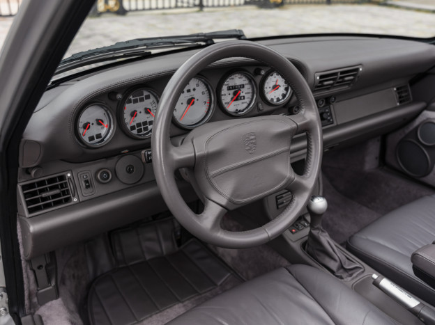 The Porsche 993 Carrera 4 Cabriolet we are proud to present is a truly unique example. Passing through the hands of the Porsche Exclusive department, this 993 boasts an extraordinary specification, featuring no fewer than 31 "X" options. Finished in Arctic Silver, it is equipped with the highly sought-after factory X51 engine kit. However, it is inside where the customization truly stands out, with an exceptional abundance of leather covering even the finest details.
