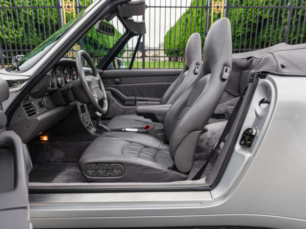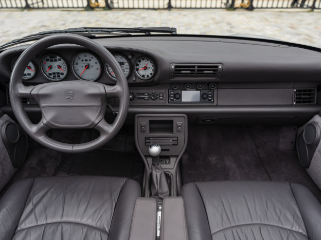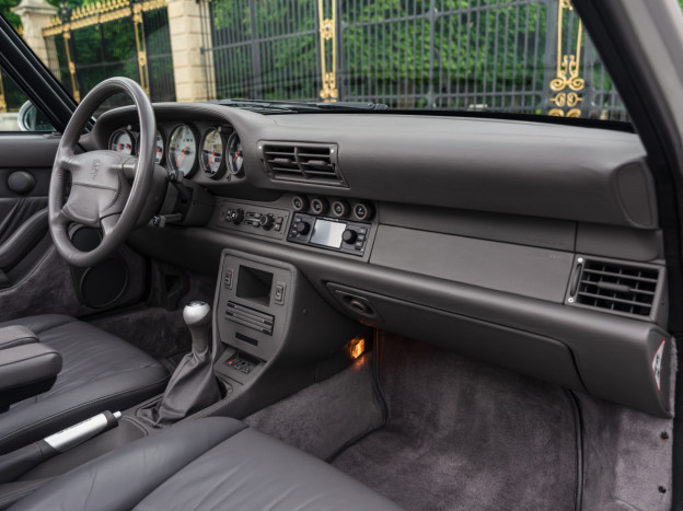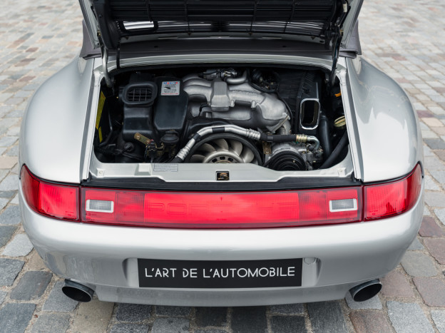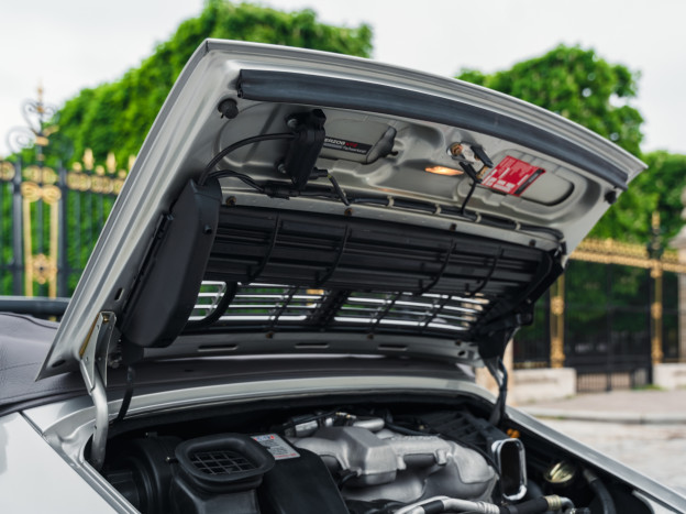 En effet, absolument tout l'intérieur a été revêtu de cuir Gris Classique. Elle dispose également de la grille moteur de la Carrera 2S d’origine. A la commande, son prix d’achat avait alors doublé par rapport au modèle de base, ce qui témoigne du niveau de personnalisation. Cette 993 se présente aujourd’hui dans un état irréprochable, avec seulement 57 500 km parcourus en 27 ans. Elle a bénéficié d’un suivi rigoureux, exclusivement réalisé en Centre Porsche Officiel ou chez des spécialistes reconnus de la marque. Nous disposons de sa facture d’achat ainsi que d’un dossier complet et documenté regroupant de nombreuses factures d’entretien, attestant du soin constant apporté à ce véhicule.