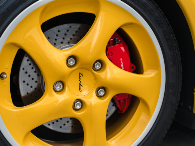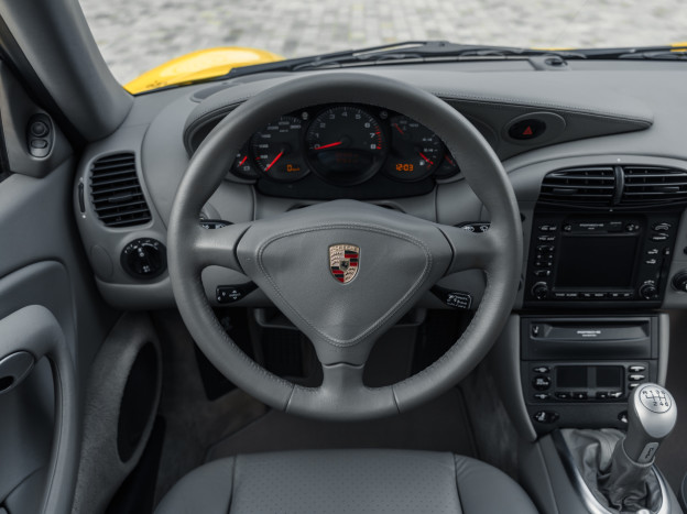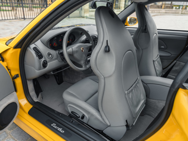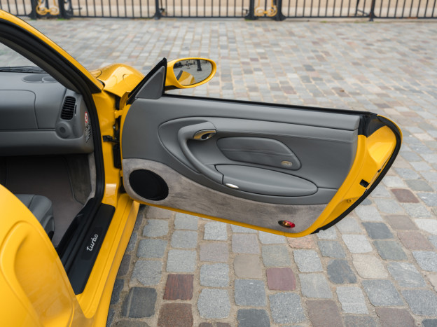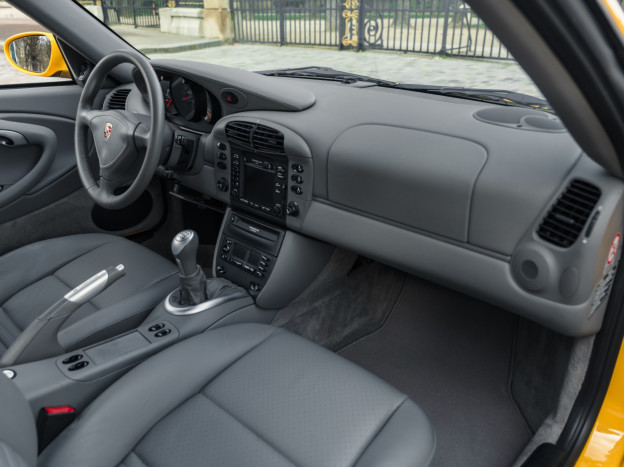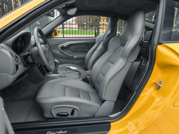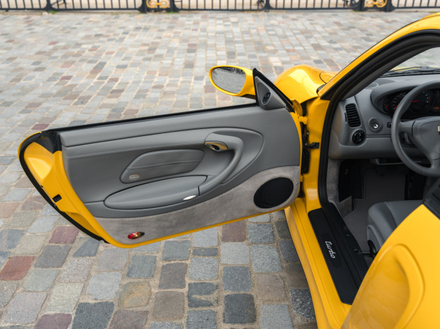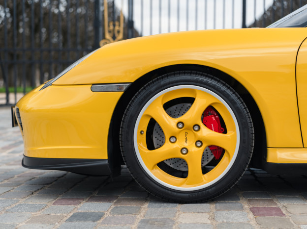 Greatly enhanced by its 6-speed manual gearbox, the Porsche 996 Turbo we are offering features an extraordinary Speed Yellow configuration extended to the wheels, with a full Graphite Grey leather interior, creating a truly original and stunning result. This car also stands out for its exceptional state of preservation, still in its original paint and with 85,500 km covered. One of the rare examples without a sunroof, this 996 is also very well equipped with heated seats, PCM 1, parking assistance, or the cruise control, the car has been serviced recently and it is ready to hit the road again.