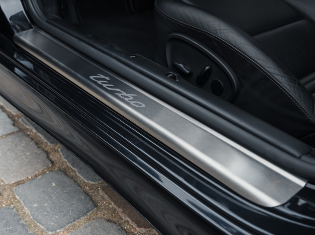 We are proud to offer for sale a truly unique example of the legendary Porsche 996 Turbo. This car is in spectacular condition, retaining entirely its original paintjob, with an exceptionally low mileage of 28,000 km. Equipped with the Aerokit and painted in the elegant Basalt Black with a black leather interior, this superb configuration is further enhanced by the stunning Aluminum interior package, which features on the gear knob, brake lever, center console, air vents, and door panels. It has passed its Piwis test, comes with complete documentation, and includes an extensive file of invoices, including the original purchase invoice.