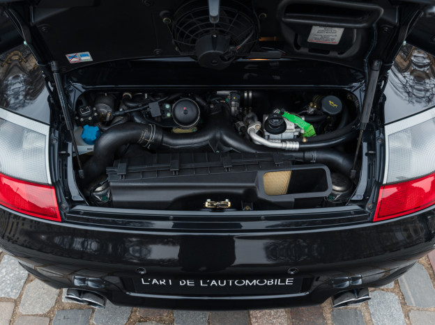 Largement avantagée par sa boite de vitesse manuelle 6 rapports et par l’option X50, et avec en plus le système audio BOSE, le toit ouvrant, les sorties d'échappement spéciales, les sièges chauffants, le régulateur de vitesse, les capteurs arrière, le PCM et bien d'autres options encore, cette 996 Turbo se distingue en tous points de vue ! Au-delà des équipements, l'histoire de cette voiture est également intéressante. Livrée par le Centre Porsche Essen, cette auto n'a connu que deux propriétaire et est restée entre les mains de son premier propriétaire jusqu'en mars 2023. Cette 996 Turbo X50 qui bénéficie d'un suivi d'une régularité exceptionnelle depuis l'origine a été révisée récemment et est prête à reprendre la route.