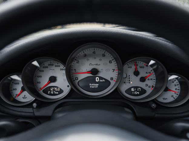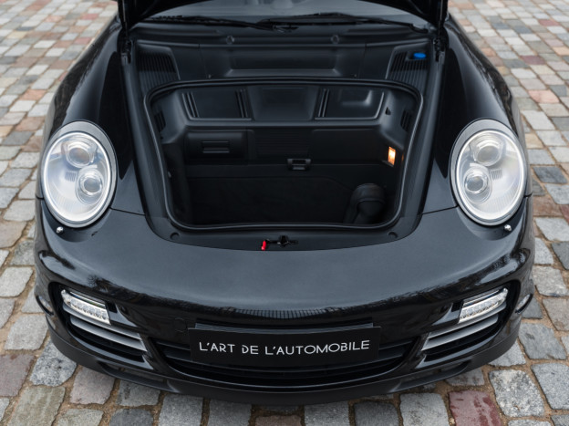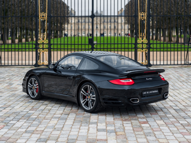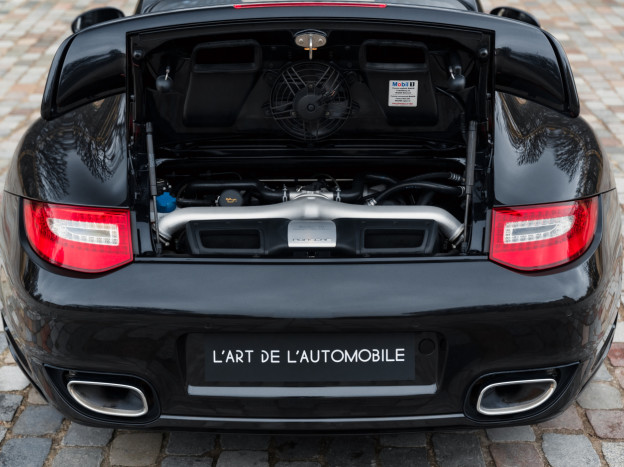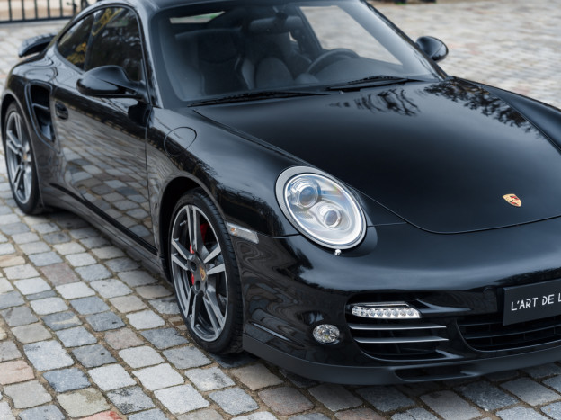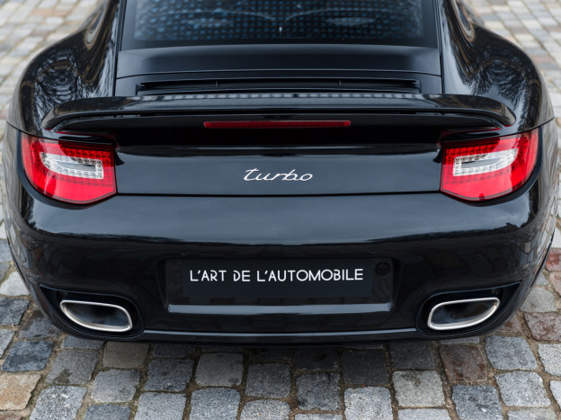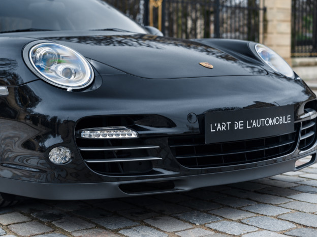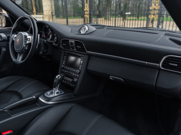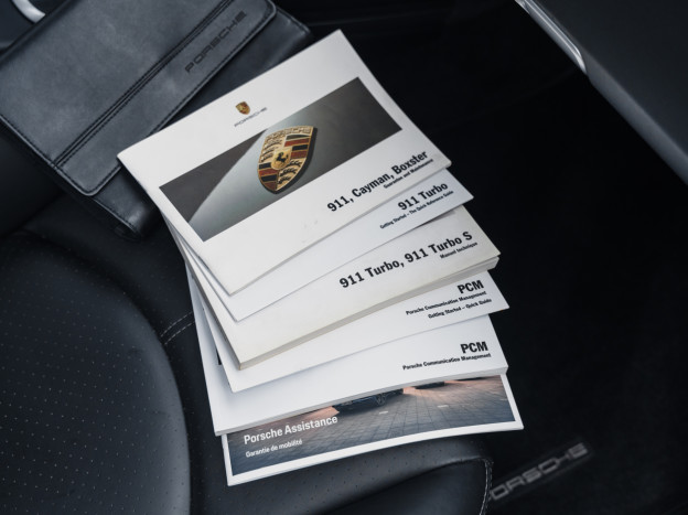 La Porsche 997.2 Turbo que nous proposons à la vente s'habille d'une élégante configuration Noir Basalte avec l'intérieur en cuir noir et la boîte PDK. Elle se distingue par son kilométrage d'origine exceptionnellement faible de 12 900 kms ! Ainsi, l'auto se présente dans un état neuf, toujours en peinture d'origine, et c'est assurément la plus belle 997.2 Turbo actuellement en vente. Cette 997 est dotée de nombreux équipements optionnels comme l'aide au stationnement, les sièges Sport adaptatifs chauffants ou encore les feux PDLS. L'auto vient avec son carnet d'entretien original, ses notices et son double de clés, elle sera à nouveau révisée par Porsche pour la vente.